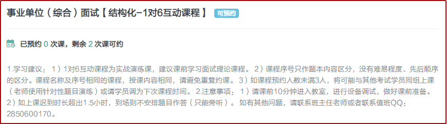示例:以下以2021事業(yè)單位輔導(dǎo)課程【總】 > 面試課程 > 【結(jié)構(gòu)化】-1對6自主預(yù)約互動互動課程為例: