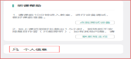 閱讀說明后,點擊右上角的個人信息---進行完善信息,請每位同學(xué)必須將個人信息填寫完整、真實、有效,以便能夠準時接收到我們所發(fā)送的課程通知。