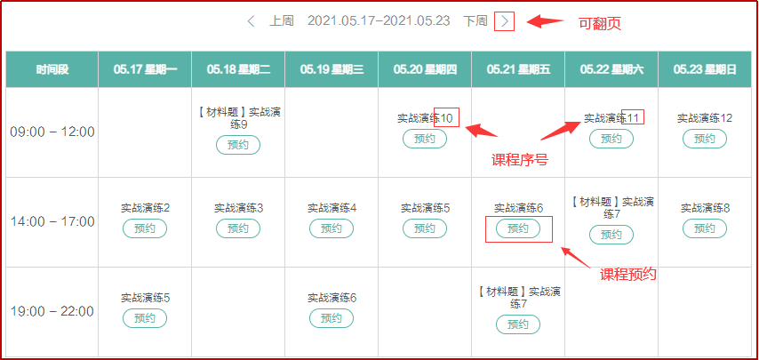 (3)課表時間段有可翻頁的選項,可以進行近一周的課程安排。課表是循環(huán)安排,每周五更新下一周課表,課表持續(xù)更新至考前;