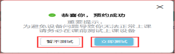 (2)如目前所用設(shè)備并非上課設(shè)備,可以先選擇"暫不測試",待后期上課時,提前用上課設(shè)備進行設(shè)備自測。