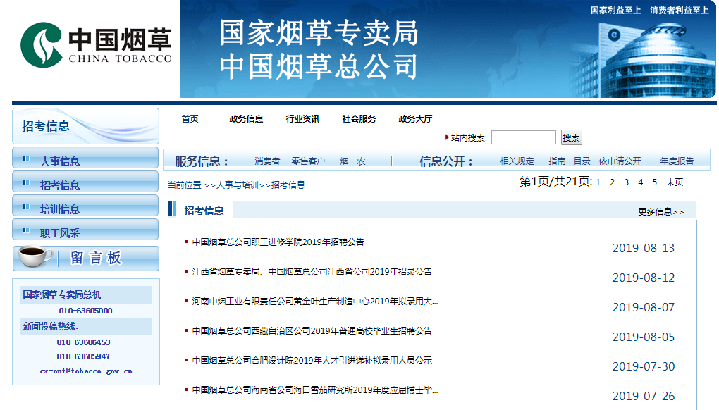 中國煙草招聘官網(wǎng):http://www.tobacco.gov.cn/html/31/3106.html