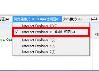 接著選擇Internet Explorer 10 兼容性視圖(C)選項,如下圖所示。