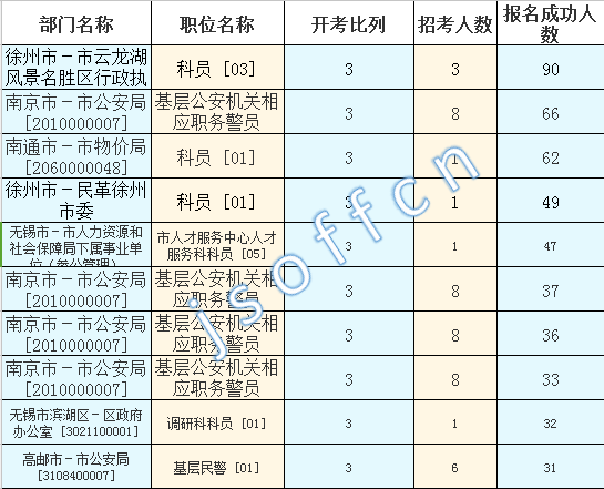 江蘇省報(bào)名人數(shù)最多十大崗位