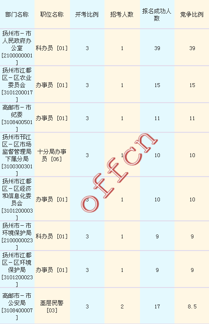 揚(yáng)州市報(bào)名競(jìng)爭(zhēng)最激烈的十大職位
