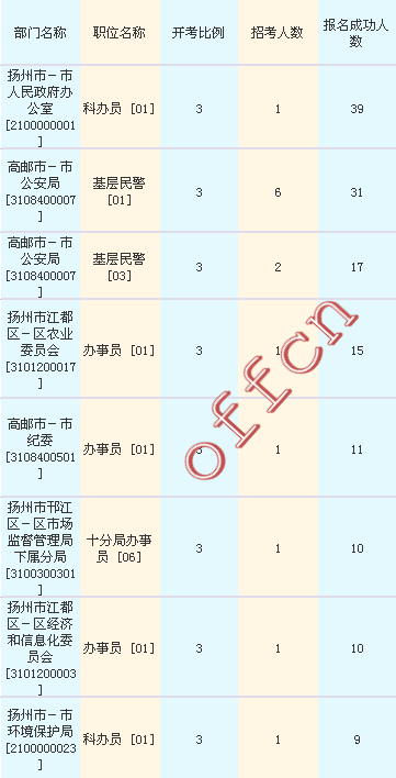 揚(yáng)州市考報(bào)名人數(shù)最多的十大職位