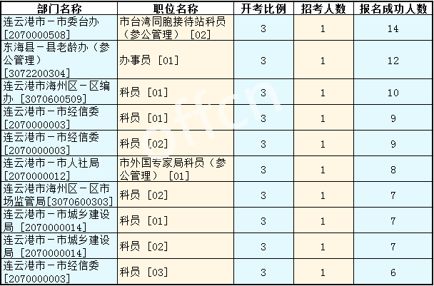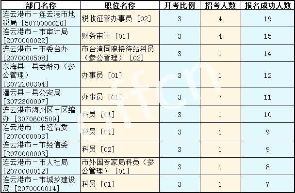 連云港公務(wù)員考試報(bào)名人數(shù)最多的十大職位