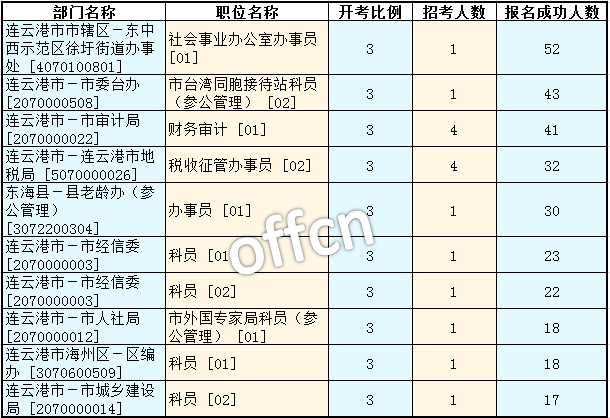 連云港公務員考試報名人數(shù)最多的十大職位