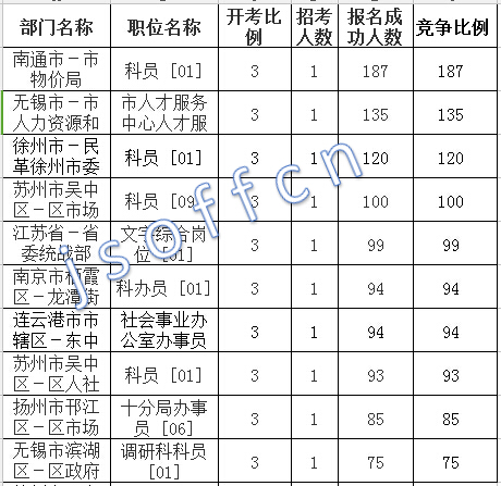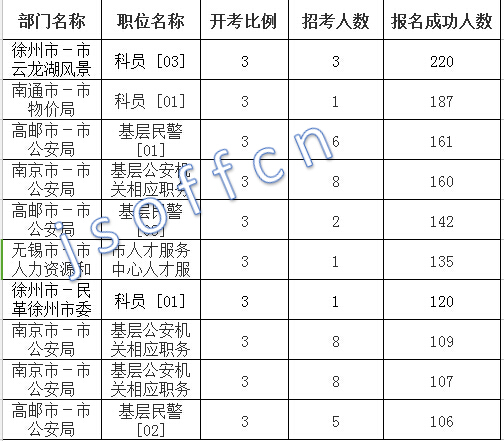 江蘇省報(bào)名人數(shù)最多十大崗位