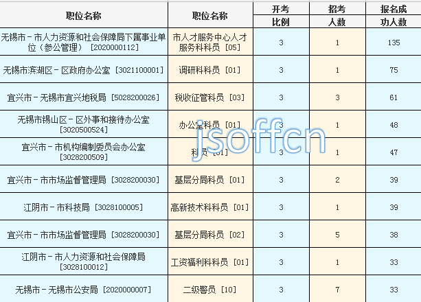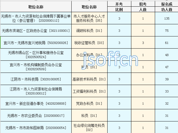 無(wú)錫市考報(bào)名人數(shù)最多的十大職位