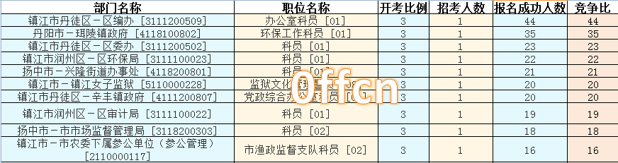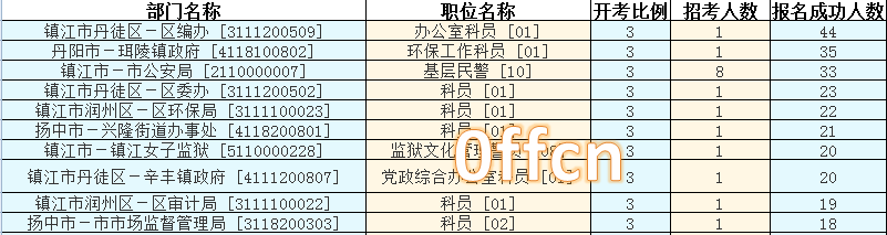 鎮(zhèn)江市報名競爭最激烈的十大職位