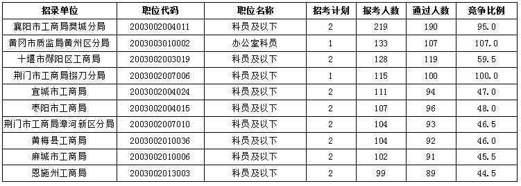 報(bào)考人數(shù)最多的十個(gè)職位如下: