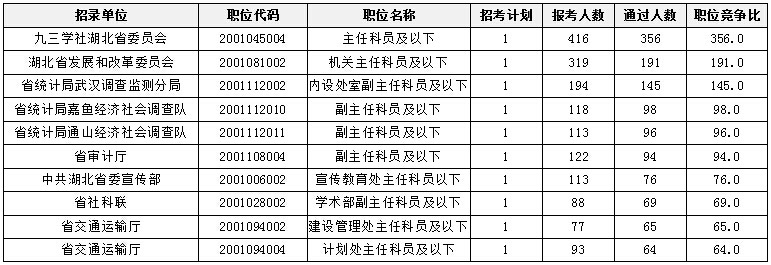 競(jìng)爭(zhēng)比例的十個(gè)職位如下: