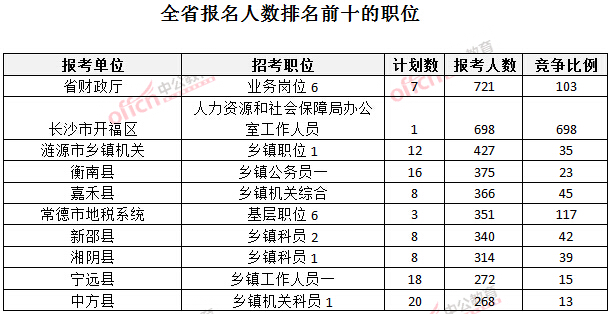 截止26日17時(shí),湖南全省報(bào)名人數(shù)排名的前三個(gè)職位,位次為