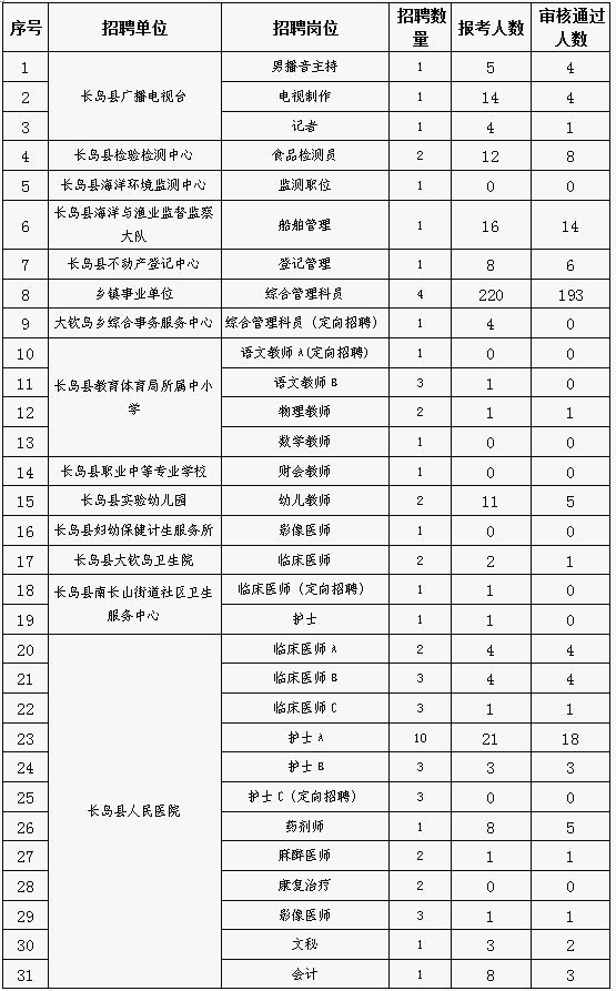 長島縣事業(yè)單位招考報名情況統(tǒng)計截止:2016.4.11
