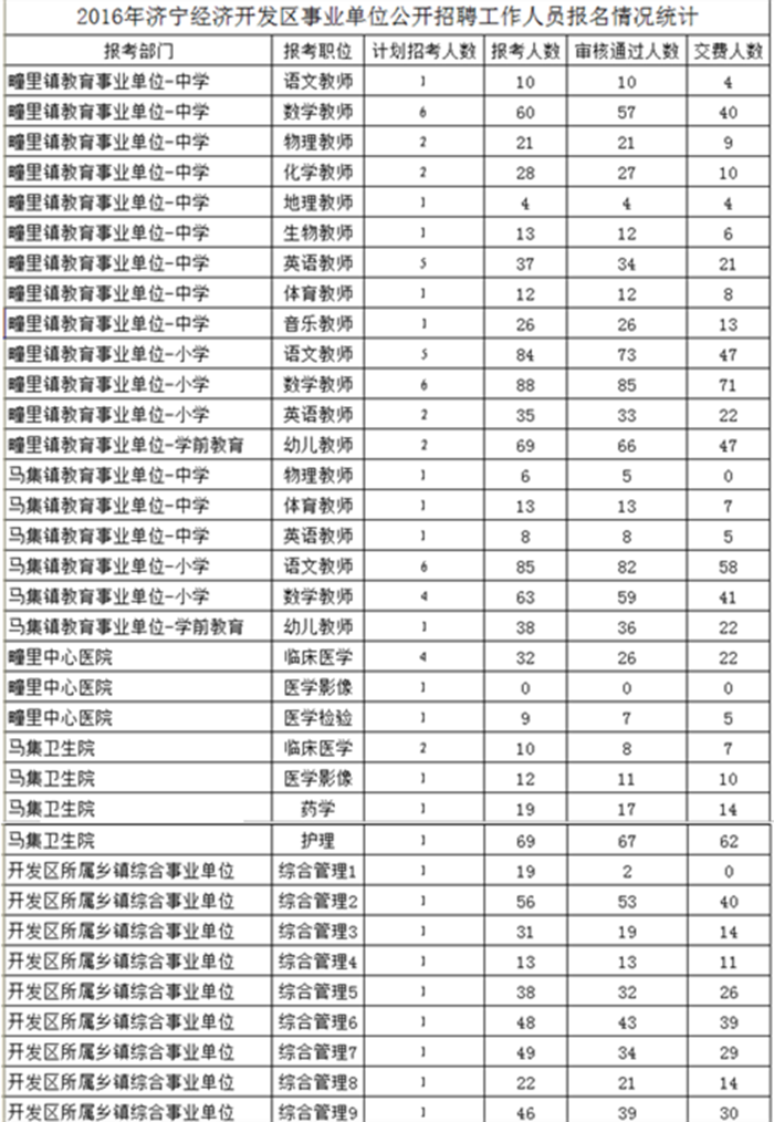 2016山東濟(jì)寧經(jīng)濟(jì)開發(fā)區(qū)事業(yè)單位招聘報(bào)名情況