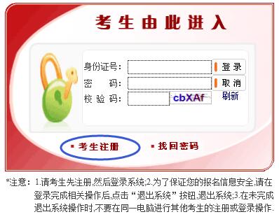 點(diǎn)擊進(jìn)去之后會(huì)轉(zhuǎn)入到登錄及注冊頁面,首先點(diǎn)擊“考生注冊”進(jìn)入注冊頁面。