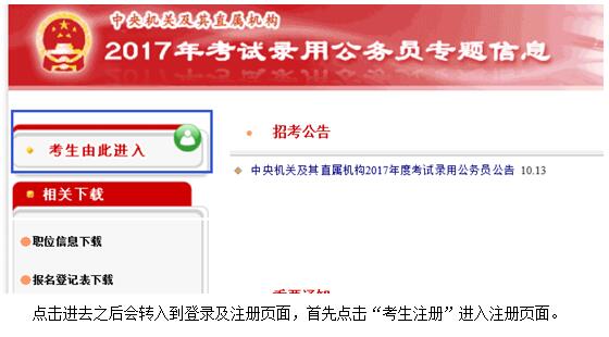 首先打開中央機(jī)關(guān)及其直屬機(jī)構(gòu)2017考試錄用公務(wù)員專題信息網(wǎng)頁http://bm.scs.gov.cn/2017/UserControl/Student/StudentIndex.aspx,點(diǎn)擊“考生由此進(jìn)入”