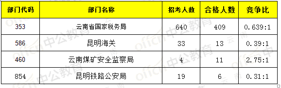 截止15日17時(shí),通過審核人數(shù)前四位的部門依次是:云南省國(guó)家稅務(wù)局、昆明海關(guān)、云南煤礦安全監(jiān)察局、昆明鐵路公安局,三部門通過審核總?cè)藬?shù)達(dá)439人,占通過審核總?cè)藬?shù)的84.42%。