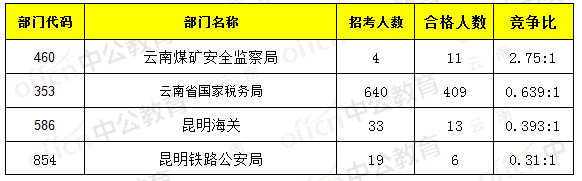 截止15日17時(shí),招錄比例的職位為云南省國(guó)家稅務(wù)局,職位代碼是0701565002,招錄1人,通過人數(shù)21人,競(jìng)爭(zhēng)比21:1 。