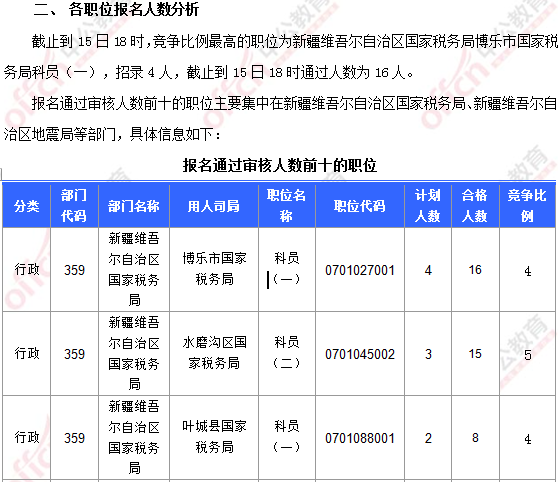 【截至15日16時(shí)】2017國考報(bào)名新疆185人過審 475個(gè)職位無人報(bào)考