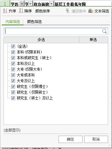 學(xué)歷對于報名國考的各位考生是一條“硬杠”,因此及時篩選出與自己條件相符的職位能讓考生更方便的進(jìn)一步挑選職位。同樣對職位表中學(xué)歷要求一列進(jìn)行篩選,可以發(fā)現(xiàn)學(xué)歷要求主要包括大專、本科、研究生三個層次??忌趫罂紩r要注意各學(xué)歷要求后面附帶的“僅限”和“及以上”兩種條件之間的區(qū)別,對比自身條件,謹(jǐn)慎報考。