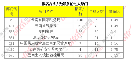 為幫助廣大考生更清晰地了解今日?qǐng)?bào)名情況,云南中公網(wǎng)校整理了審核通過人數(shù)部門排名,供廣大考生參考: