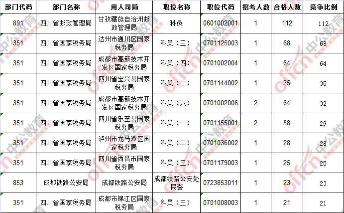 首日?qǐng)?bào)名通過審核人數(shù)前十的職位主要集四川省國家稅務(wù)局等部門,具體信息如下: