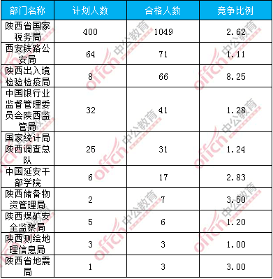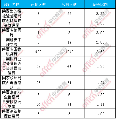 為幫助廣大考生更清晰的了解今日?qǐng)?bào)名情況,陜西中公網(wǎng)校整理了審核通過人數(shù)前幾位的部門以及競(jìng)爭(zhēng)比例最激烈的幾大部門,供廣大考生參考: