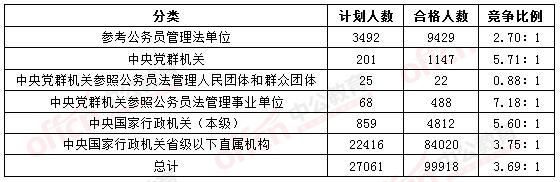 目前,報(bào)名人數(shù)最多的是中央國(guó)家行政機(jī)關(guān)省級(jí)以下直屬機(jī)構(gòu),合格人數(shù)已達(dá)84020人,這也與其龐大的招錄人數(shù)息息相關(guān),競(jìng)爭(zhēng)比的是中央黨群機(jī)關(guān)參照公務(wù)員法管理事業(yè)單位,僅招錄68人,目前已有488人報(bào)名,競(jìng)爭(zhēng)比為7.18:1,領(lǐng)先于其他系統(tǒng),此外,中央黨群機(jī)關(guān)競(jìng)爭(zhēng)比為5.71:1,根據(jù)歷年報(bào)名情況來看,也有潛力超越中央黨群機(jī)關(guān)參照公務(wù)員法管理事業(yè)單位。