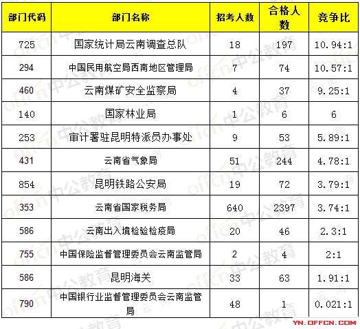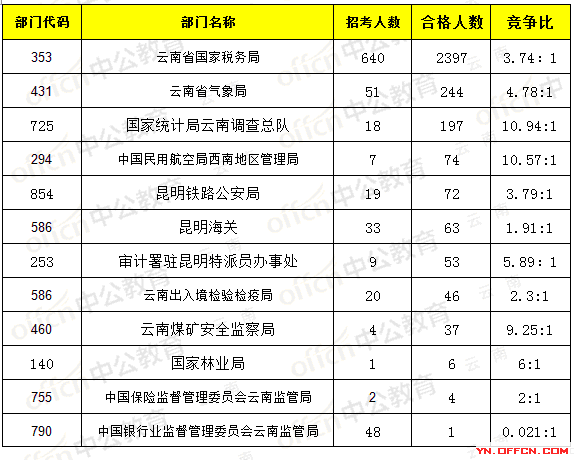 為幫助廣大考生更清晰地了解今日報名情況,云南中公網(wǎng)校整理了審核通過人數(shù)部門排名,供廣大考生參考: