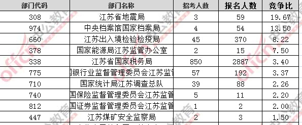 截止到17日8時,通過審核人數(shù)前三位的部門依次是:江蘇省國家稅務(wù)局、江蘇出入境檢驗檢疫局、中國銀行業(yè)監(jiān)督管理委員會江蘇監(jiān)管局,三部門通過審核總?cè)藬?shù)達3449人,占通過審核總?cè)藬?shù)的91.3%。