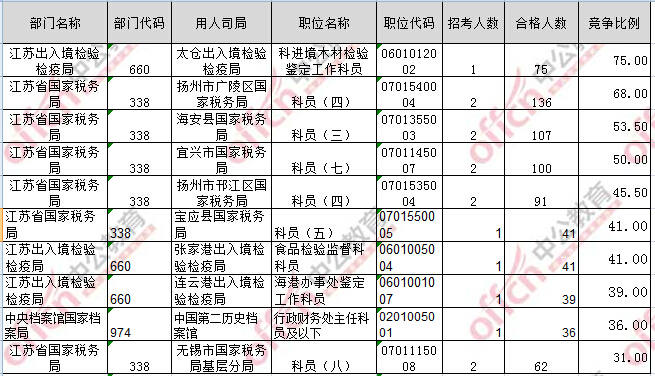 截止到17日8時,競爭比例的職位為江蘇出入境檢驗檢疫局太倉出入境檢驗檢疫局動植物檢驗檢疫科進境木材檢驗鑒定工作科員一職,招錄1人,截止到17日8時通過人數(shù)為75人。