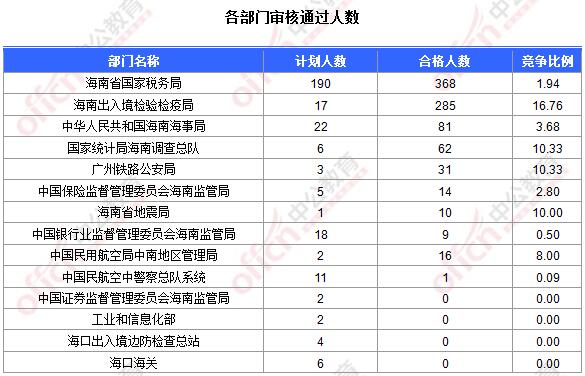 為幫助廣大考生更清晰的了解今日?qǐng)?bào)名情況,海南中公網(wǎng)校整理今天各部門的報(bào)名情況供廣大考生參考: