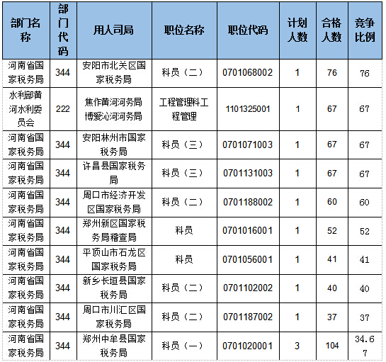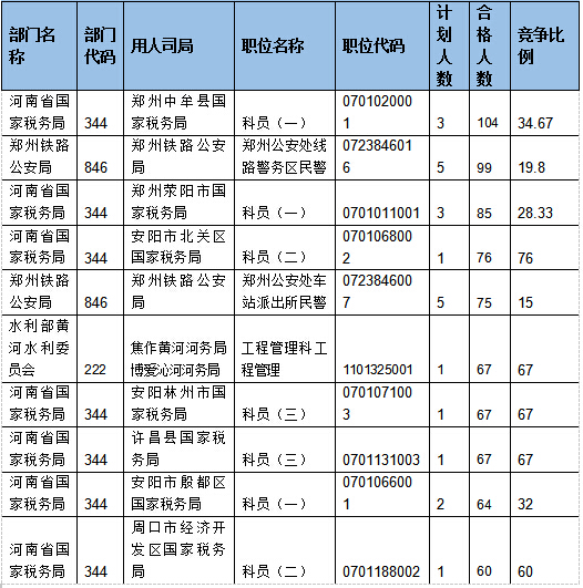 報(bào)名通過(guò)審核人數(shù)排名前列的職位主要集中在河南省國(guó)家稅務(wù)局、鄭州鐵路公安局、水利部黃河水利委員會(huì)等,具體信息如下: