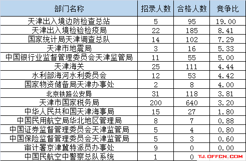 為幫助廣大考生更清晰的了解今日報(bào)名情況,天津中公教育整理了審核通過人數(shù)前五位的部門以及競爭比例最激烈的五大部門,供廣大考生參考: