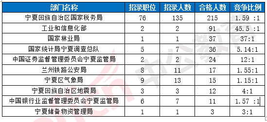 2017國考寧夏地區(qū)各部門報考情況