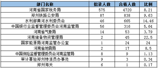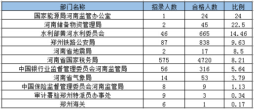 截止17日16時,通過審核人數(shù)前三位的部門依次是:河南省國家稅務(wù)局、鄭州鐵路公安局,水利部黃河水利委員會,三部門通過審核總?cè)藬?shù)6223人,占通過審核總?cè)藬?shù)的93%。