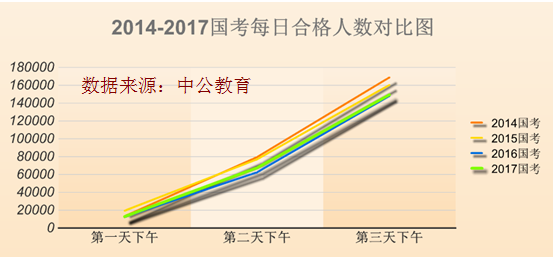 10月17日,2017國考報名已經(jīng)進行到第三天,截至17日下午4點,共有149284人通過審核,超出去年同期千余人,平均競爭比達5.5:1。中公網(wǎng)校專家深入研究了近四年國考報名數(shù)據(jù),發(fā)現(xiàn)國考并未降溫,熱度仍然不減,但考生在報考過程中更趨理性,不再特別熱衷扎堆報考。