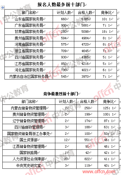 部門:報名人數前十被國稅“通吃”,內蒙古物管局穩(wěn)坐“釣魚臺”
