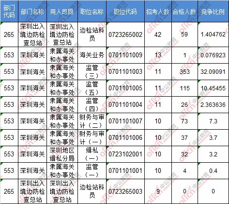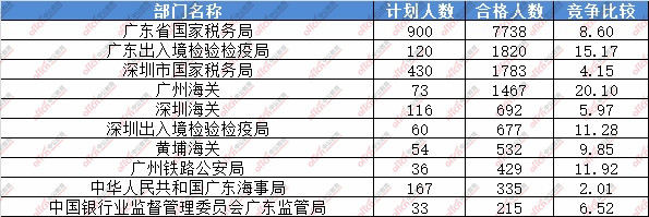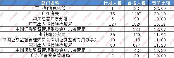 報(bào)名通過(guò)審核人數(shù)前十的職位主要集中在廣東省國(guó)家稅務(wù)局、深圳海關(guān)、廣州海關(guān)等部門(mén),具體信息如下: