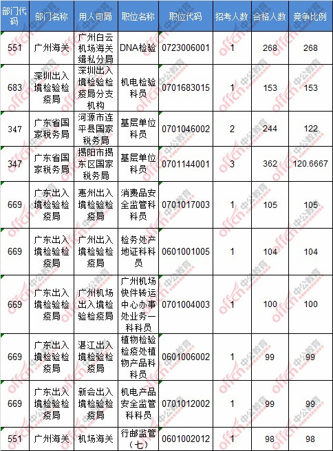 截止到18日8時,工作地點(diǎn)在廣東的職位共有188個無人報考,占全部職位的1.1%。下面是無人報考職位一覽表,中公網(wǎng)校專家建議廣大考生多關(guān)注一些較冷職位,避免激烈競爭,結(jié)合自身條件,找到屬于自己的職位。