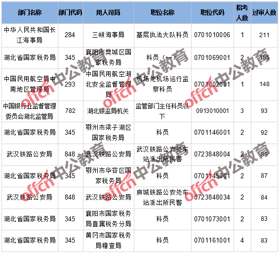 【截至18日8時】2017國考報名湖北5327人通過審核,110個職位無人通過審核