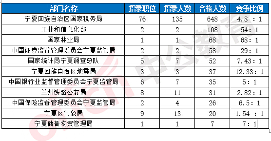 2017國(guó)考寧夏地區(qū)各部門(mén)報(bào)考情況