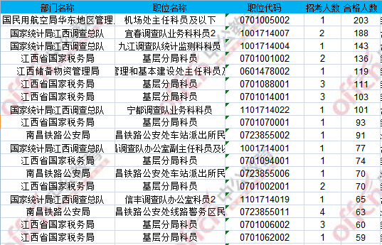 報名通過審核人數(shù)前十的職位主要集中在江西省國家稅務(wù)局、國家統(tǒng)計局江西調(diào)查總隊具體信息如下: