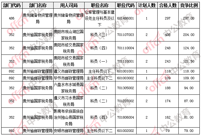【截至18日16時】2017國考貴州職位報名合格人數(shù)10824人,21個職位無人報名