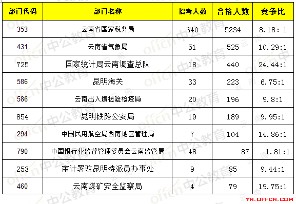 為幫助廣大考生更清晰的了解今日報名情況,云南中公網(wǎng)校整理了審核通過人數(shù)部門排名,供廣大考生參考:
