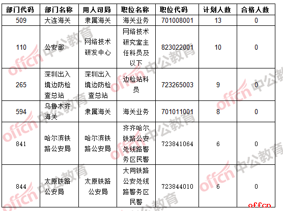 值得考生注意的是,目前仍有2082個職位無人報考,這些職位之所以受冷落基本原因有兩個,一是地處偏遠,待遇差,發(fā)展前途不明朗,另外一個則是 “門檻高”,符合條件的考生少,沒有報考資格,只能“望崗興嘆”。以下是無人報考職位中招錄人數(shù)較多的職位: