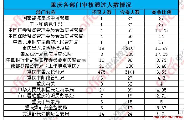 為幫助廣大考生更清晰的了解今日?qǐng)?bào)名情況,重慶中公教育整理今天各部門的報(bào)名情況供廣大考生參考: