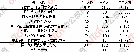 為幫助廣大考生更清晰的了解今日?qǐng)?bào)名情況,內(nèi)蒙古中公網(wǎng)校整理了審核通過(guò)人數(shù)前十位的部門,供廣大考生參考: