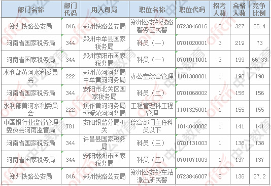 報(bào)名通過審核人數(shù)排名前列的職位主要集中在鄭州鐵路公安局、河南省國家稅務(wù)局,水利部黃河水利委員會(huì),具體信息如下:
